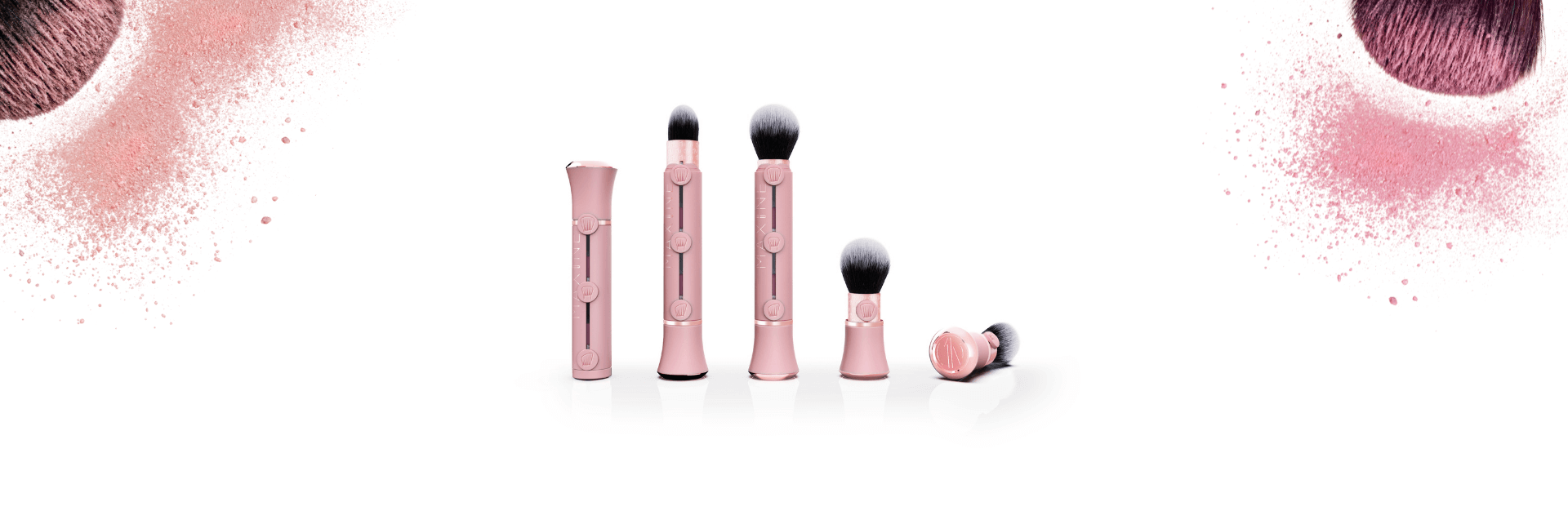 While in the beginning we will focus on the most-used brush variations, we will offer a wide range of brushes at a later stage. Wide, puffy, pointy – whatever you need, you can always carry it with you. You will be able to mix & match your own individual 3-in-1 Maxine Brush!